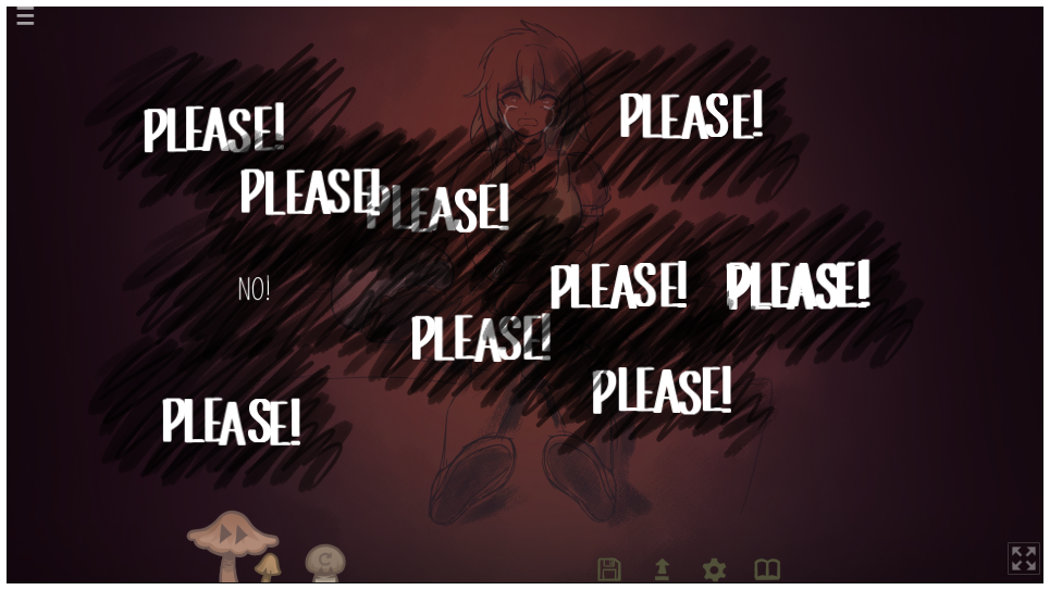 I only got four endings so far, but I'm literally bawling my eyes out how could you!? But it's so well done, I both hate this and love this. When I first got one of the endings where you eat Button, I was literally saying, through tears "but I don't even like mushrooms" which is true. It looks like such a silly and fun game, but it's actually a very silly and fun and depressing game and I feel called out with the social anxiety and general anxiety stuff and it's just.. 10/10, I have nothing more to say. I loved this. Thank you ♥️